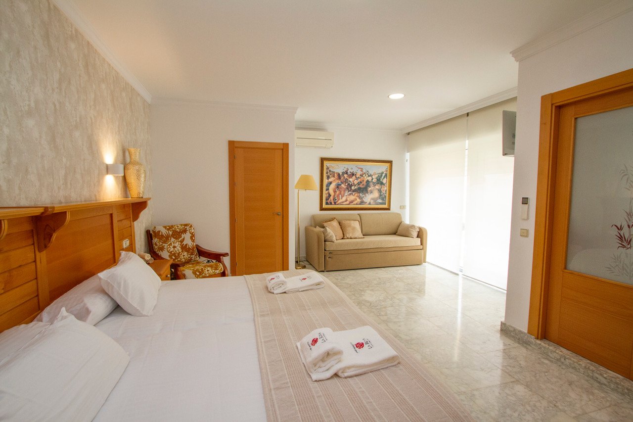 Nuestras Suites cuenta con 2 dormitorios y 2 cuartos de baño para un máximo de 6 personas con la posibilidad de extender a 8 personas.